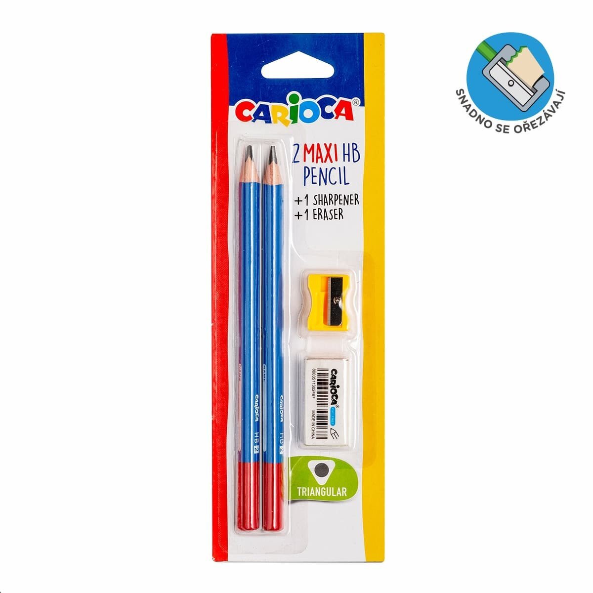 Carioca trojhranná tužka HB Maxi - 2 ks s pryží a ořezávátkem