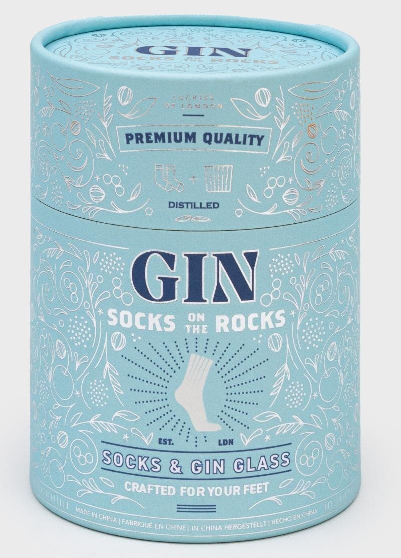 Dárkový set Socks on the Rocks: Gin (ponožky, sklenice)