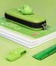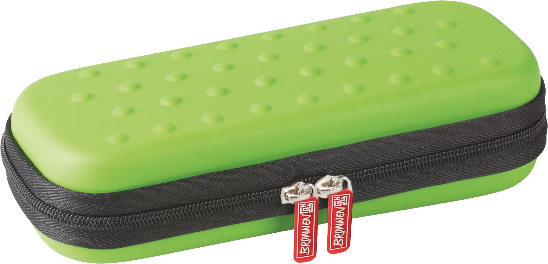 Penál zelený, uvnitř poutka na 3 tužky, síťová přihrádka