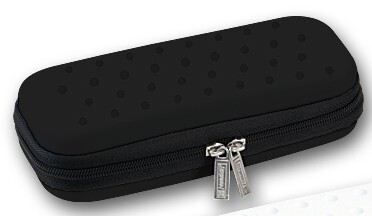 Penál černý, uvnitř poutka na 3 tužky, síťová přihrádka
