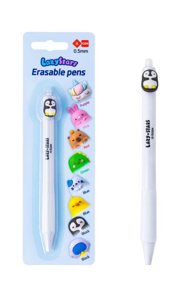 Długopis żelowy ścieralny z mechanizmem klik i motywem pingwina. Grubość końcówki 0,5 mm, czarny tusz, na karcie blisterowej. przeczytaj całość
