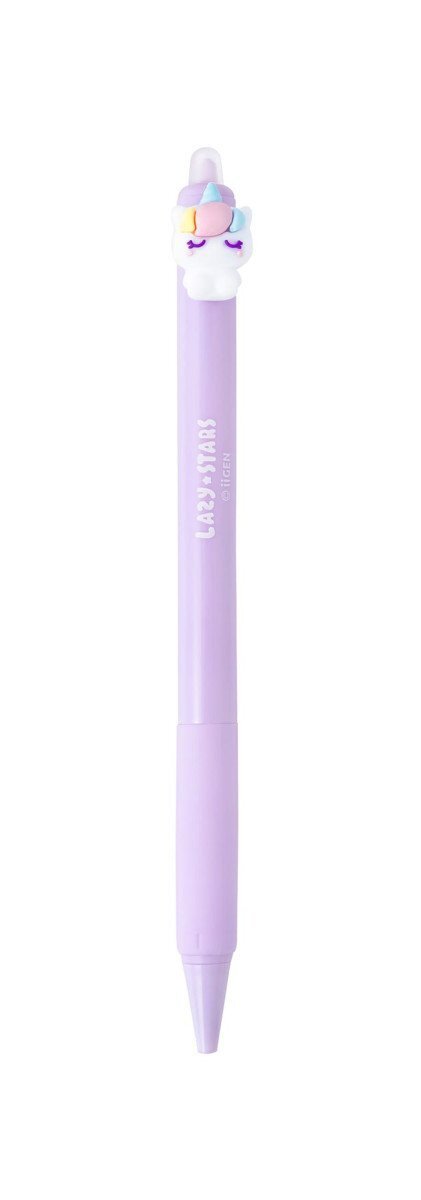 Klikací gumovací gelový roller Jednorožec s hrotem 0,5 mm, barva inkoustu - fialová. Ideální do školního penálu i jako dárek– pero píše hladce a chyby lze snadno vymazat pomocí praktické gumovací koncovky. przeczytaj całość