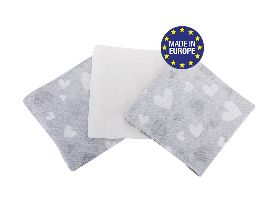 Bomimi Pleny bavlna Premium 140 g/m2 potisk, 80x70, 3ks, SRDÍČKO-ŠEDÁ
