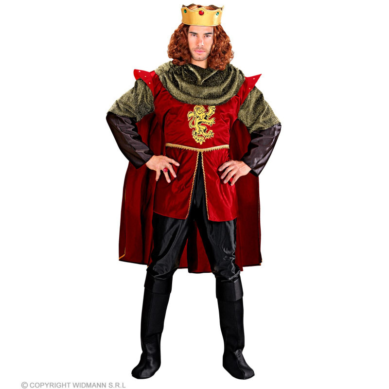 Pánský kostým královského rytíře Kostým obsahuje: kabát, plášt, kalhoty, návleky na boty, koruna s drahokam Velikost: XXL Materiál: 100% polyester przeczytaj całość