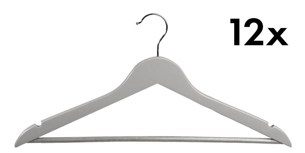Šatní ramínka 12 ks, lotosové dřevo, šedá KESPER Sada 12 ks šedých šatních ramínek z kvalitního lotosového dřeva s FSC® certifikací nabízí praktické i elegantní řešení pro organizaci oblečení. Díky protiskluzové úpravě, dvěma zářezům na sukně a liště na kalhoty jsou ramínka univerzální pro různé...