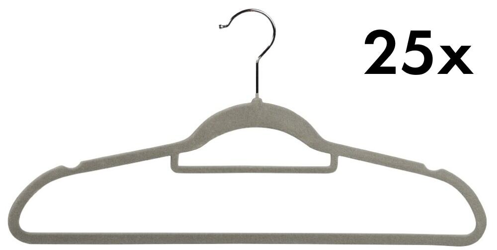 Šatní ramínka 25 ks, plast, šedá KESPER Praktická sada 25 šatních ramínek vám pomůže udržet oblečení přehledně uspořádané. Ramínka jsou vyrobena z plastu (ABS) a potažena flockem, který zabraňuje sklouzávání oděvů. Každé ramínko je vybaveno zářezy na sukně, tyčí na kalhoty a držákem na kravatu...
