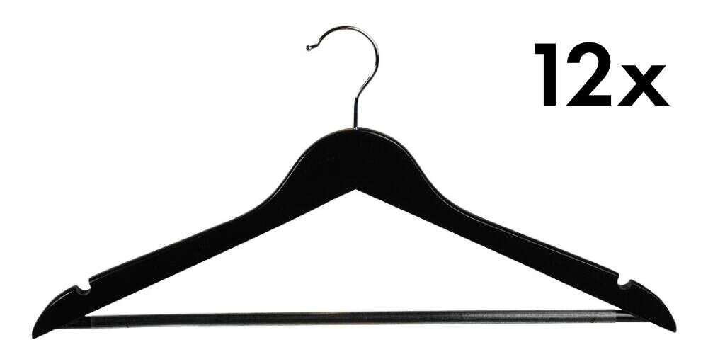 Šatní ramínka 12 ks, lotosové dřevo, černá KESPER 67156