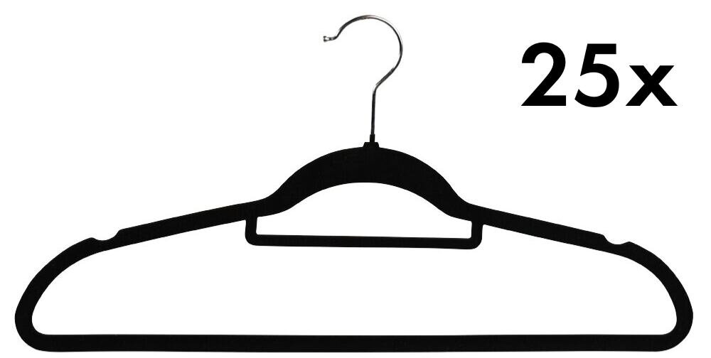 Šatní ramínka 25 ks, plast, černá KESPER Praktická sada 25 šatních ramínek vám pomůže udržet oblečení přehledně uspořádané. Ramínka jsou vyrobena z plastu (ABS) a potažena flockem, který zabraňuje sklouzávání oděvů. Každé ramínko je vybaveno zářezy na sukně, tyčí na kalhoty a držákem na kravatu...