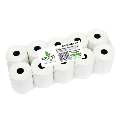 ROLKI TERMICZNE - ZDROWY PARAGONProdukowane z papieru termoczułego o gramaturze 50 ± 6 g/m², z gwarancją trwałości nadruku do 6 lat.Z dbałości o jakość naszych wyrobów oraz bezpieczeństwo i komfort pracy użytkowników, rolki firmy Emerson produkowane są z surowca niezawierającego szkodliwych...