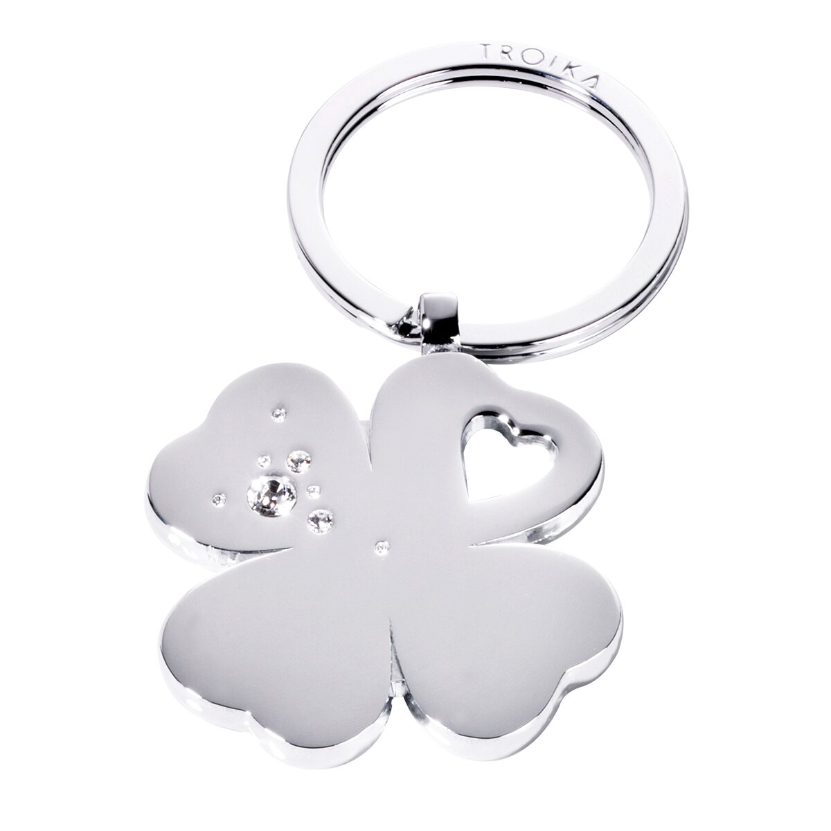 TROIKA klíčenka - čtyřlístek, kovová, Swarovski, stříbrná