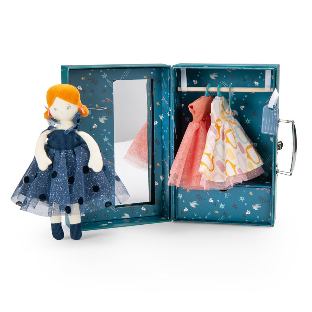 Uvnitř čekají tři nádherné večerní róby, ve kterých Mademoiselle Blanche zazáří při každé příležitosti. Kufřík je praktický, přenosný a ideální pro všechny malé milovníky oblékacích her.Proč si ho děti zamilují? • elegantní kufřík se šatní skříní a zrcadlem • tři krásné šaty pro Mademoiselle...