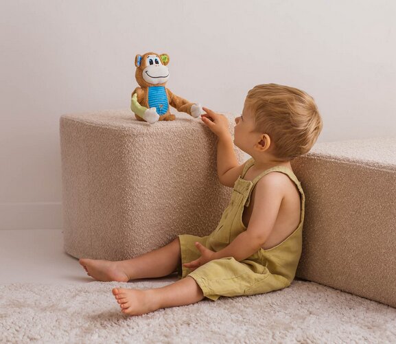 Fikająca małpka zachęcająca dziecko do aktywności Zabawa rozwijająca motorykę i koordynację Hej, szkrabie, zabawny małpiszon porusza się do przodu na swoich obrotowych ramionach, zachęcając dziecko do aktywności fizycznej. Maluch może obserwować ruchy małpki, próbować ją złapać i podążać za nią,...