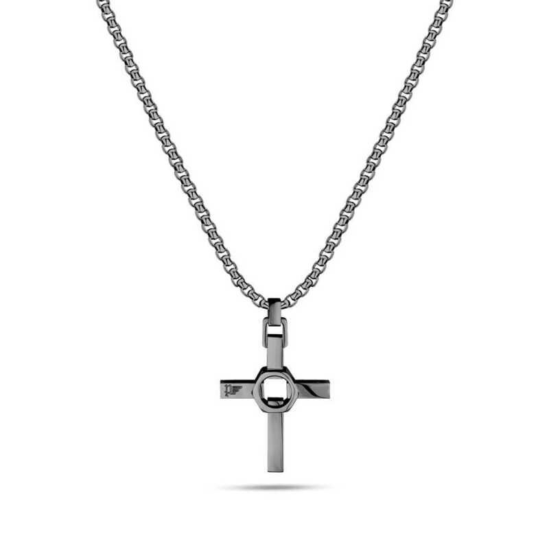 Elegantní pánský náhrdelník značky Police spojuje kvalitní ocel a moderní design. PVD pokovení zajišťuje dlouhou životnost a odolnost proti poškrábání. Dekorativní přívěsek s motivem stylového křížku dodává šperku jedinečný charakter. S délkou 60 cm a praktickým zapínáním na karabinku se tento náhrdelník stane skvělým doplňkem pro každého muže, který ocení spojení elegance a originality.