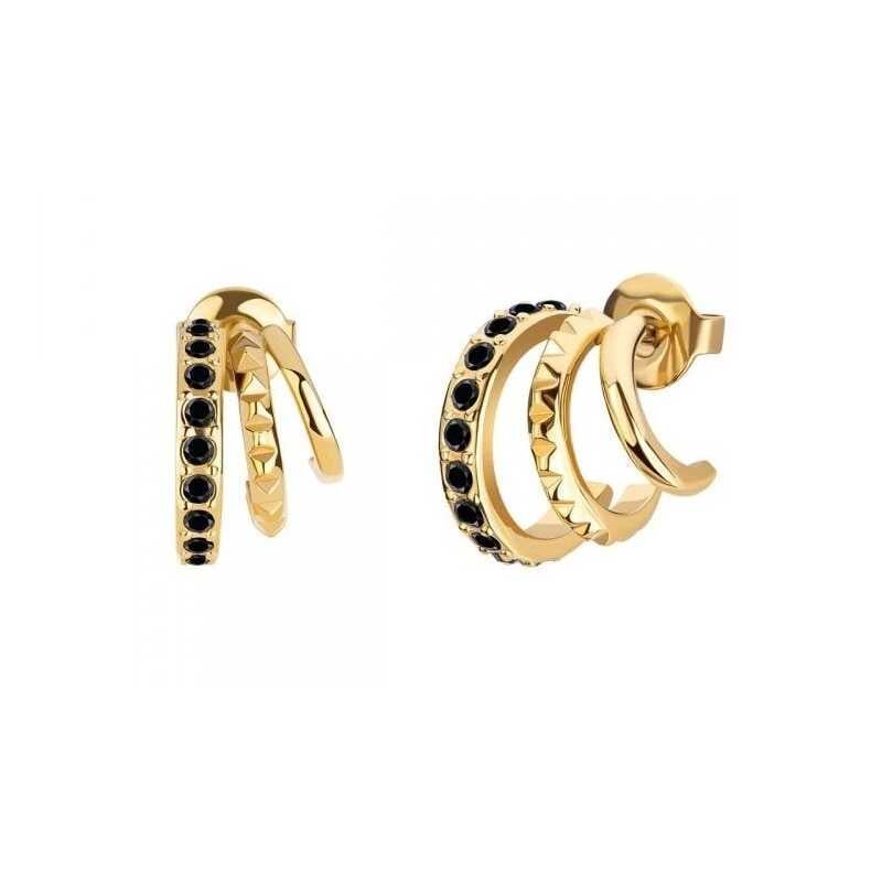 Pozlacené půlkruhové náušnice s černými krystaly PEJLE2010411 Police
