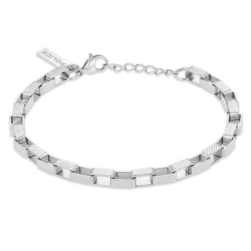 Pánský náramek značky Police spojuje moderní design s kvalitním zpracováním. Vyroben z odolné oceli, jeho matné hranaté články dodávají na eleganci a šarmu. S délkou 18,5 cm a možností prodloužení o 2,5 cm se dokonale přizpůsobí každému zápěstí. Klasické zapínání na karabinu zajišťuje bezpečnost nošení. Ozdobte své zápěstí tímto stylovým kouskem, který podtrhne vaši osobnost.