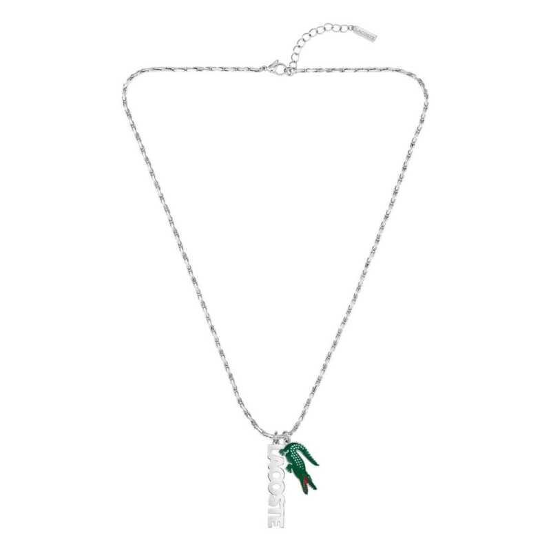 Stylový náhrdelník značky Lacoste představuje dokonalou kombinaci elegance a sportovního ducha. Vyrobený z kvalitní oceli, vyniká přívěskem s ikonickým krokodýlem, ozdobeným zeleným a červeným smaltem, a druhým přívěskem s názvem značky. S délkou 60 cm se perfektně hodí k různým outfitům, čímž dodá vašemu stylu šmrnc a osobitost. Ozdobte se šperkem, který podtrhne vaši jedinečnost.