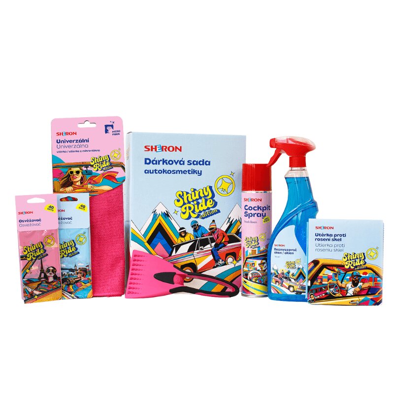 SHERON Shiny Ride Dárková sada je prémiové dárkové balení v designové krabičce. Dárková sada je vhodná jako vánoční dárek pro ženy. Obsahuje výrobky z řady Shiny ride:Cockpit spray 400 ml fresh linen pro regeneraci palubní desky -  s vůní čerstvě vypránoRozmrazovač 750 ml pro snadné odstranění... przeczytaj całość