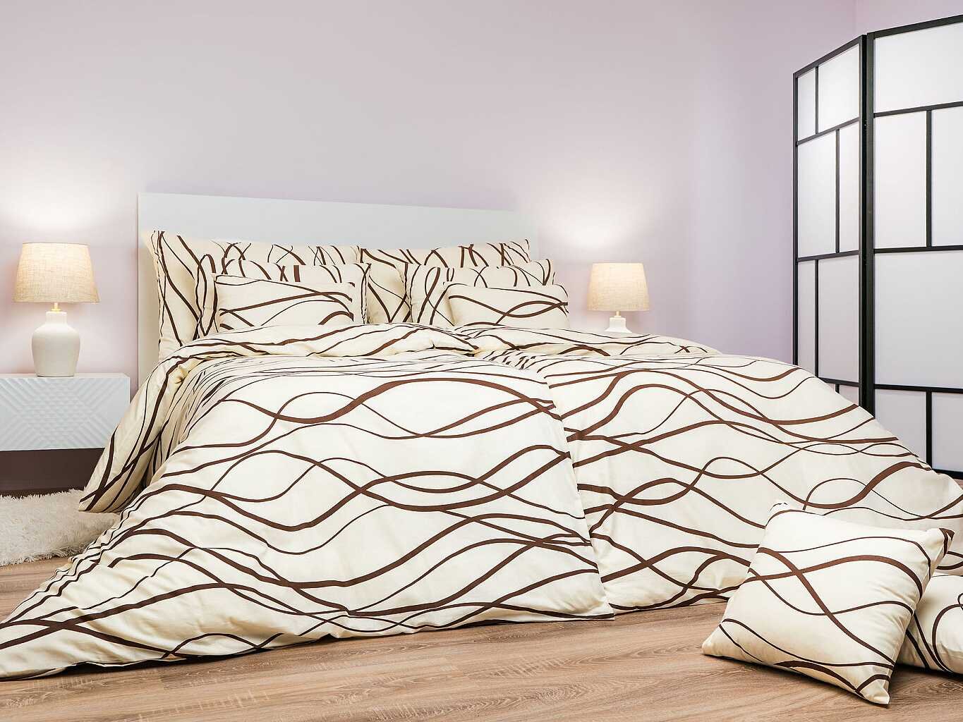 Povlečení bavlna Vlny banánové na tmavě hnědém 140x200, 70x90 cm II.jakost
