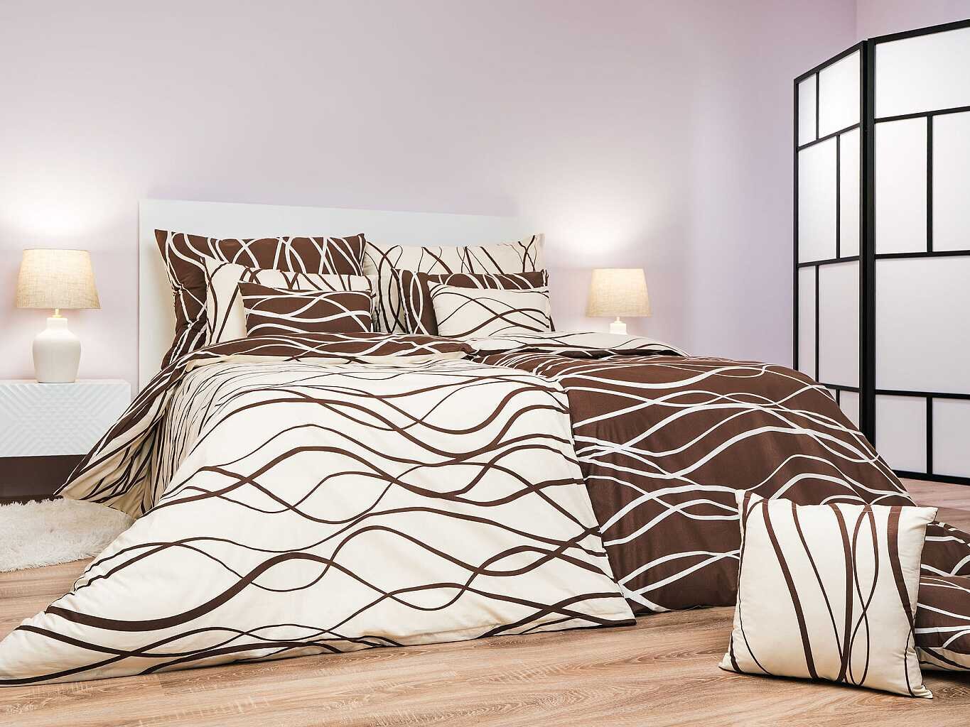 Povlečení bavlna Vlny banánové/hnědé DUO 140x200, 70x90 cm II.jakost