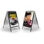 Oboustranná reklamní tabule, tzv. "áčko" je dostupnoualternativou jak upozornit zákazníka na právě probíhající akci nebosdělit důležité informace.Reklamní plochu o velikosti A2 (420 x 594 mm) nikdo nemine bezpovšimnutí! Poutač má kulaté rohy a rychloupínací systém umožňujesnadnou výměnu plakátu....