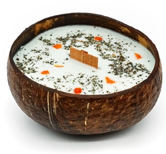 Svíčka z kokosu - vůně mandarinka - Sójové svíčky v kokosové skořápce jsou krásnou ozdobou a dekorací. Svíčky neobsahují parafín, který je vedlejším produktem ropného průmyslu.Spalováním parafínu se do vzduchu uvolňují nebezpečné toxiny, které potom vdechujeme. Svíčka obsahuje bavlněný knot, tedy...