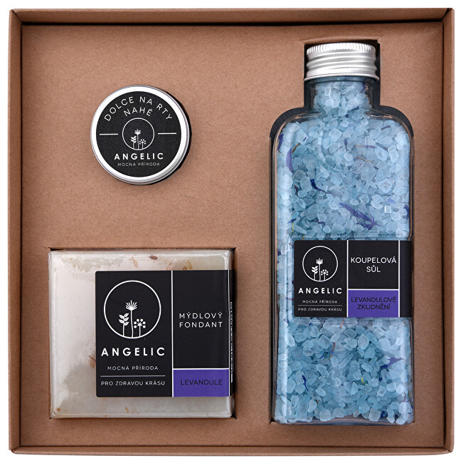 Dárková sada obsahuje: Koupelová sůl Levandulové zklidnění 260 gMýdlový fondant Levandule 105 gAngelic Dolce na rty Nahé 15 ml przeczytaj całość