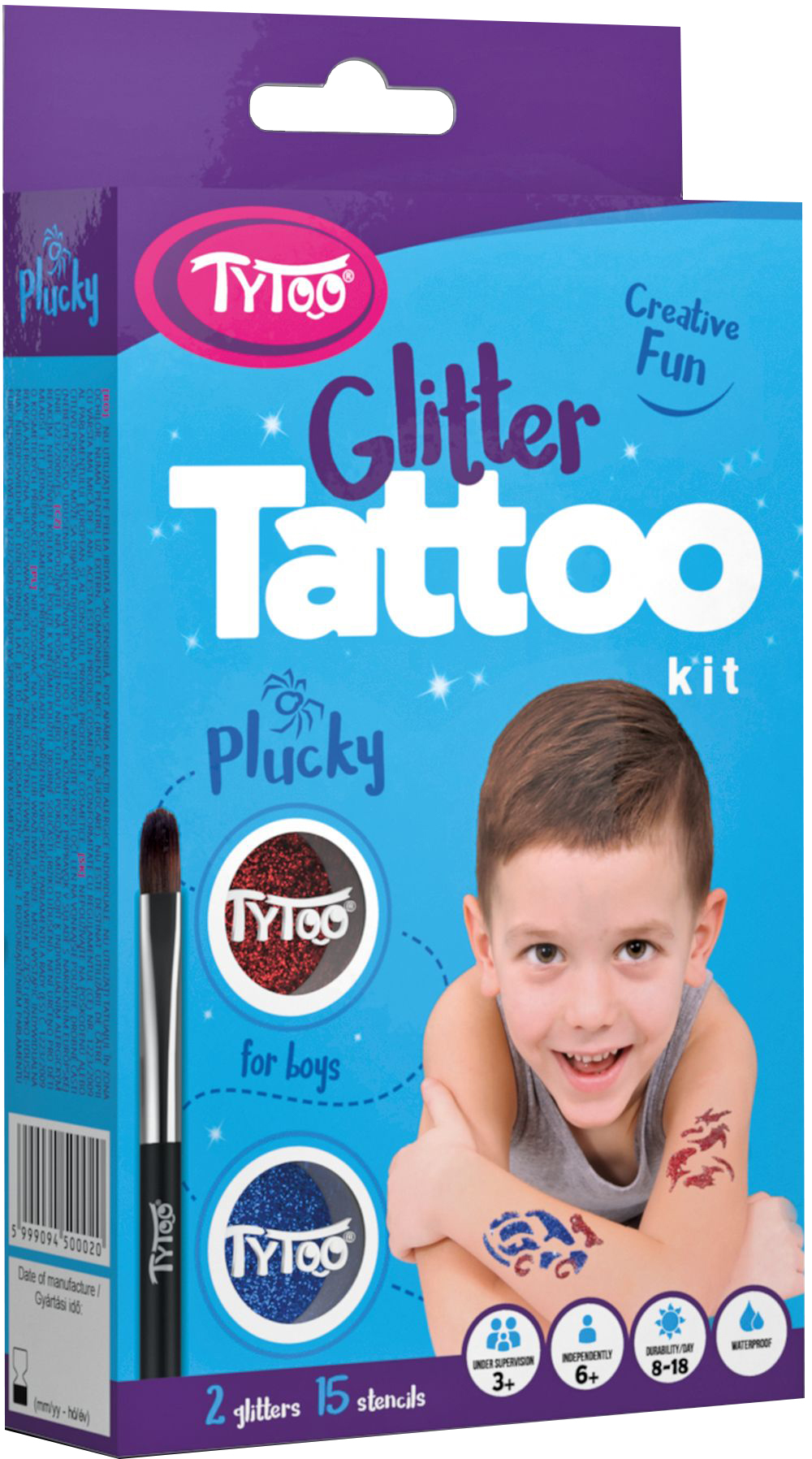 TyToo Plucky to idealny wybór dla wszystkich chłopców, którzy chcą urozmaicić swój wygląd oryginalnymi i wesołymi tatuażami. Ciesz się kreatywną zabawą, która utrzymuje się długo, a jednocześnie można ją łatwo usunąć, kiedy tylko zechcesz.