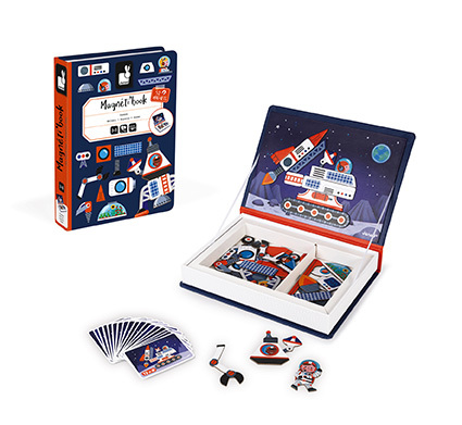 Janod Magnetibook Kosmos to magnetyczna książka, która wciągnie dzieci na długie godziny zabawy i układania. Dzięki kolorowemu zestawowi magnetycznych elementów oraz wzorów mogą tworzyć kosmiczne pojazdy, jednocześnie rozwijając wyobraźnię, motorykę małą i logiczne myślenie. Wyjątkowa zabawka odpowiednia dla dzieci w wieku od 3 do 8 lat, łącząca zabawę z nauką.
