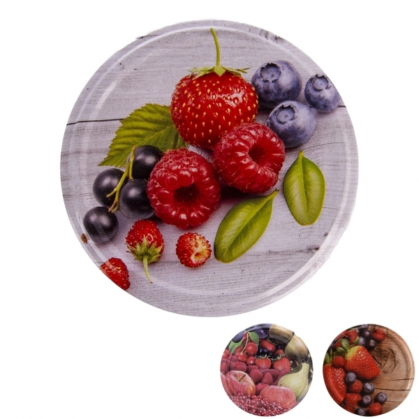 Wieczko do słoika do wekowania, z gwintem. Materiał: metal. Dekoracja: owoce. Wymiary: śr. 8,2 cm. przeczytaj całość