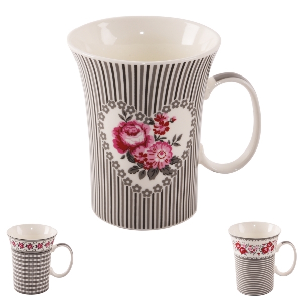 Hrnek s uchem. Materiál: porcelán. Dekor růžiček, assort dekorů. Rozměry: objem 0,36 l, pr. 9 cm, v. 11 cm. przeczytaj całość