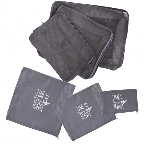 Niezależnie od tego, czy jesteście aktywnymi podróżnikami, czy po prostu lubicie mieć porządek w swoich rzeczach, te organizery podróżne przypadną wam do gustu. Dzięki szerokiej gamie rozmiarów zmieści się w nich wiele przedmiotów - od drobnych rzeczy po ubrania czy kosmetyki. Sześć organizerów o różnych rozmiarach, zamykanych na zamek. Trzy z nich wyposażone są w siateczkę umożliwiającą podgląd zawartości oraz w uchwyt. Dzięki organizerom uporządkujecie walizkę i będziecie mieli ją przejrzyście ułożoną. Materiał: poliester, plastik, metal, skóra ekologiczna. Wymiary: 40x30x13 cm, 30x28x13 cm, 30x21x12 cm, 35x28 cm, 27x26 cm oraz 26x17 cm.