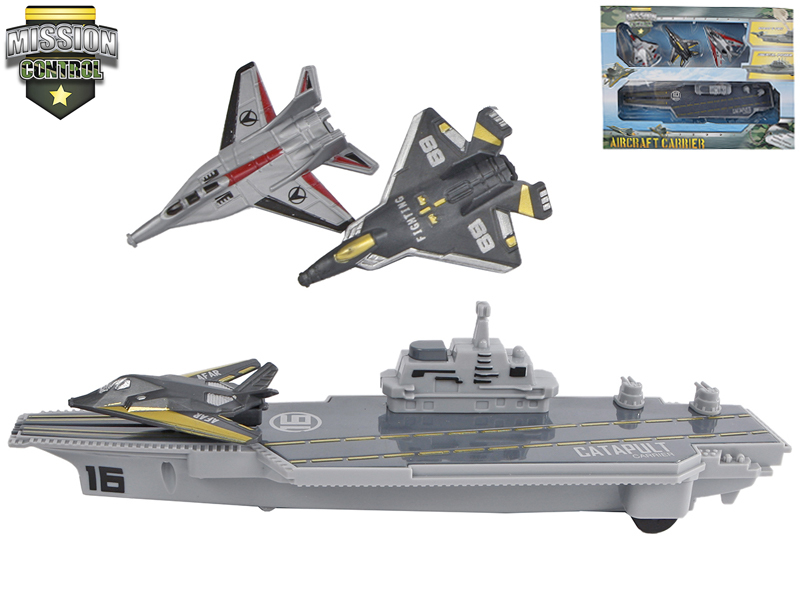Letadlová loď 24cm na setrvačník + stíhačka 3ks v krabičce