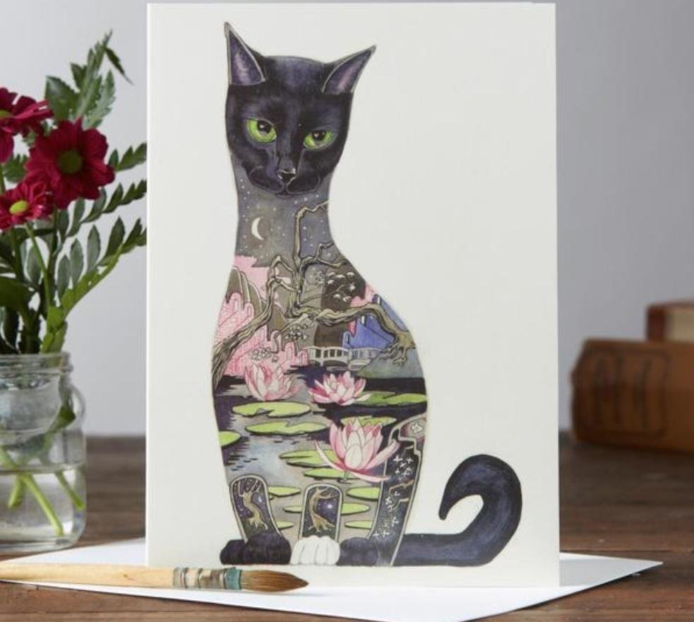 Karnet A001 B6 + koperta Czarny kot