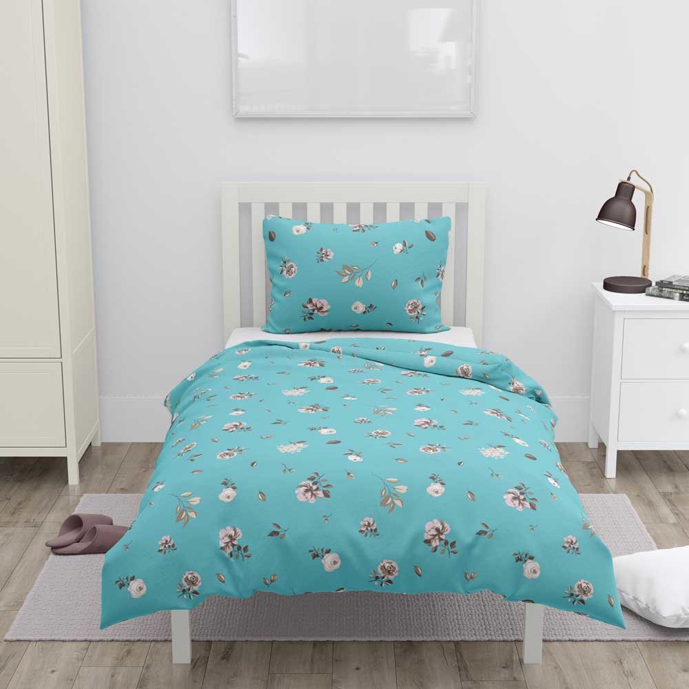 Bavlněné povlečení na jednolůžko, modré, květiny