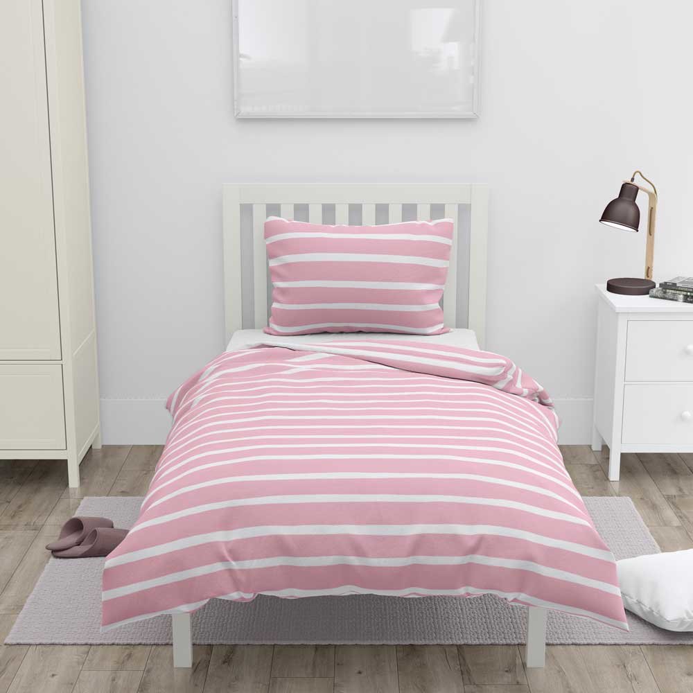 Bavlněné povlečení na jednolůžko, růžové, bílé proužky