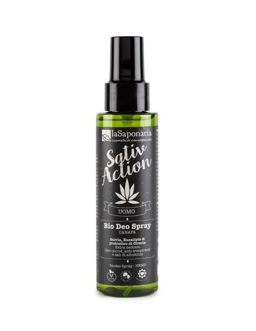 Pánský deodorant ve spreji s konopím BIO je ručně umíchaný, pouze z přírodních surovin, jejichž kombinace nedráždí podpaží. Prebiotika z čekanky podporují rovnováhu kožního mikrobiomu a blokují růst bakterií, které mají na svědomí nežádoucí zápach při pocení. Díky spreji se snadno nanáší a nezanechává stopy na oblečení, na zdraví ani v přírodě. Neobsahuje totiž problematické sloučeniny hliníku, antiperspiranty ani alkohol.