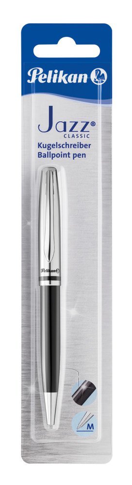 Jazz Classic, kovové s pochromovanou vrchní částí a černou spodní částí těla, s kovovým klipem, leskle lakované, náplň Pelikan 337 M modrá, na blistru przeczytaj całość