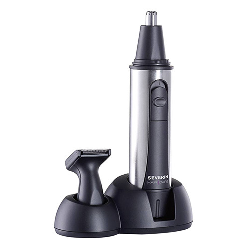 Zastřihovač chloupků Severin, HS 0781, sada pro zastřihování chloupků v nose a uších, stanice pro uložení, nerezové břity, 2 stříhací hlavy, s osvětlením, napájení z baterie 1 x AA