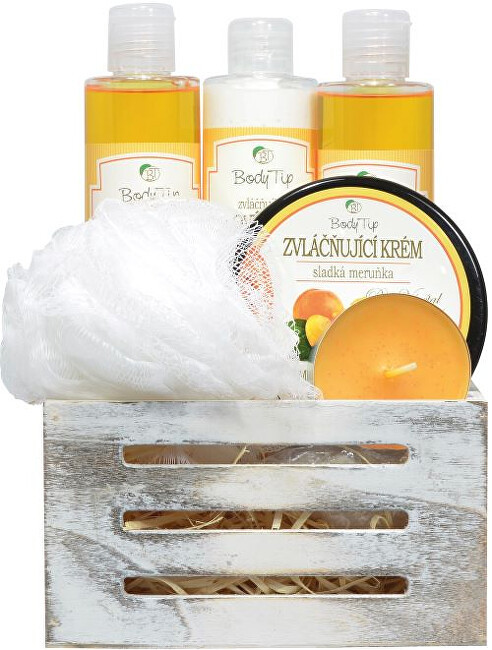 Dárkové balení Meruňka v dřevěné bedýnce s přírodními extrakty a meruňkovým olejem pro péči o pokožku těla i obličeje. Příjemná vůně meruněk vás bude provázet po celý den. Má skvělé vyživující a regenerační účinky, zvyšuje pružnost pokožky. Díky zvláčňujícím olejům bude Vaše pokožka jemná, vláčná...