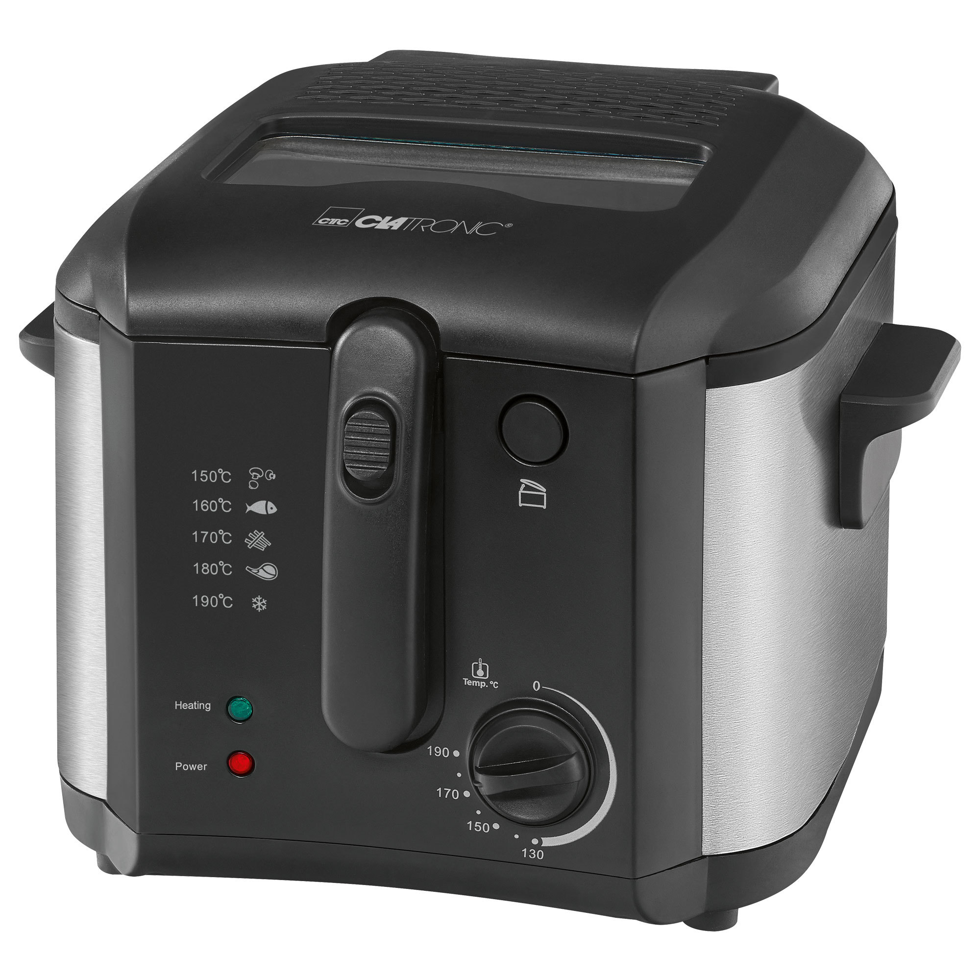 Fritéza Clatronic, FR3649, nerez, 2,5 L, nastavitelný termostat, 2 kontrolky, odnímatelné víko s okénkem, odkapávač tuku, 1600 W