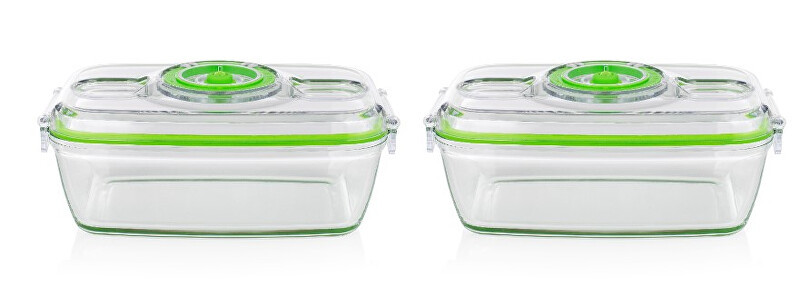 Praktická sada 2 ks skleněných dóz o objemu 1,1 l s možností vakuování (kompatibilní s vakuovačkou Princess 492985). Vakuová dóza zachová vaše potraviny a pokrmy déle čerstvé. Dózy jsou vhodné do trouby, mikrovlnné trouby i mrazáku. Víko je z BPA free plastu a disponuje silikonovým těsněním a... przeczytaj całość