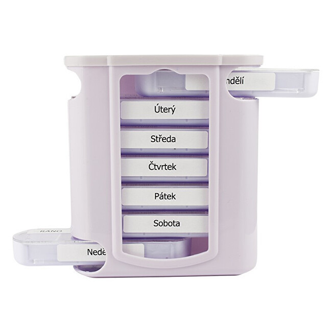 Patrový dávkovač léků se zásuvnými políčky pro každý den v týdnu, přehledně popsaný pro snadnou orientaci. Denní dávkovač je rozdělený na 4 části: Ráno-Poledne-Večer-Noc a lze jej použít i samostatně. Dávkovač slouží k přehlednému uspořádání léků či potravinových doplňků doma i na cestách. przeczytaj całość