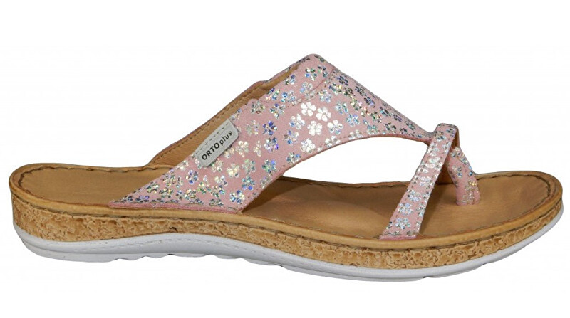 ORTO plus Růžové kožené žabky s kytičkami 39