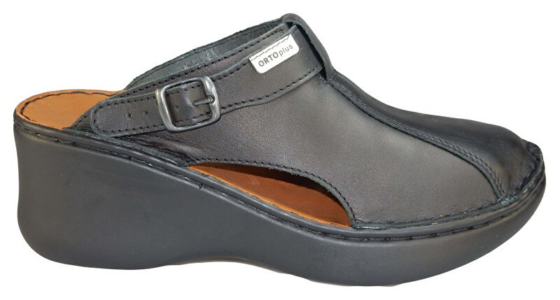 ORTO plus Černé zdravotní nazouváky s plnou špičkou a otočným páskem přes patu 41