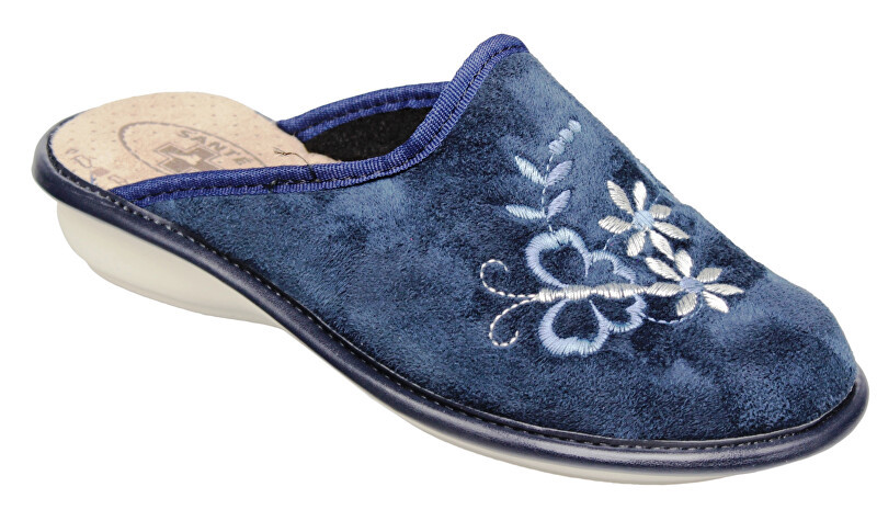 Dámská domací pantofel.Vyměkčená stélka - velice pohodlné pro celodenní nošení.Lehce zateplené.Lehký klínek - cca 3,5 cm.Textilní svršek. przeczytaj całość