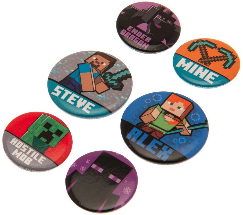 Sada odznaků Minecraft. Obsahuje: 6 odznaků. Z toho 4 odznaky o průměru 2,5cm a 2 odznaky o průměru 3,2cm. przeczytaj całość