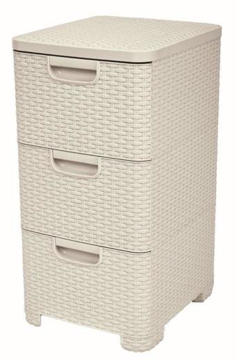 Bílý regál Style značky Curver je vyrobený ze 70% recyklovaného plastu. Tři šuplíky o objemu 14 litrů se nacházejí ve stejně barevném stojanu na nožičkách.Praktický designově propracovaný stojan se šuplíky v imitaci ratanu vám pomůže udržet pořádek doma, v dílně nebo třeba i na zahradě....
