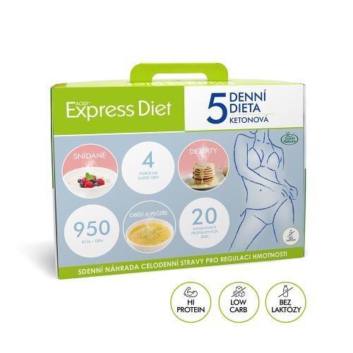 5ti denní dieta Express Diet je bílkovinná ketonová dieta, fungující na principu ketózy, tedy rychlém spalování tuků, bez pocitu hladu.Obvykle jsou prvotním zdrojem energie pro tělo sacharidy. Během 5denní bílkovinné diety Express Diet je jejich přísun omezen a hlavním zdrojem energie se stává...