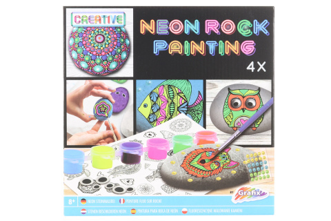 Malování kamínků Neon – namaluj si své kamínky neonovými barvami. Balení obsahuje 6× neon barev, šablony, 1× štětec, 1× dřevěné škrabátko, třpytivé nalepovací kamínky a 4 kamínky. przeczytaj całość
