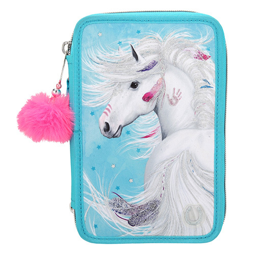 Praktický třípatrový školní penál vyrobený z kvalitního materiálu odolného proti běžnému opotřebení. Jedinečná náplň penálu nabízí - 2 tužky, 18 pastelek, 18 fixů, nůžky, lepidlo, pravítko, ořezávátko, gumu a kapsičku.Penál je světle modré barvy, na přední straně je vyobrazen motiv Miss Melody s...